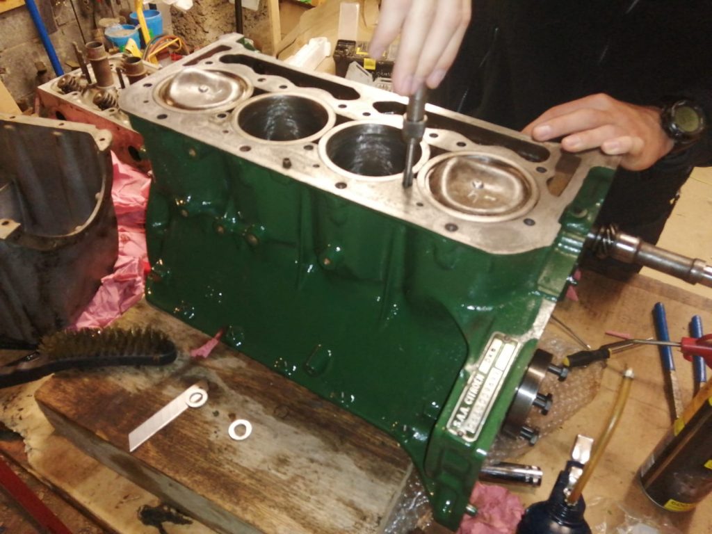 Coté bielles, après une métrologie (et vu le peu de km) celles d’origines ont été conservées. Les chemises et pistons, remplacés par du neuf (vu l’état, c’est presque injustifié, mais tant que c’est ouvert, le coût final change peu (et ça nous laisse de très beaux ensembles bielles / chemises réutilisables).