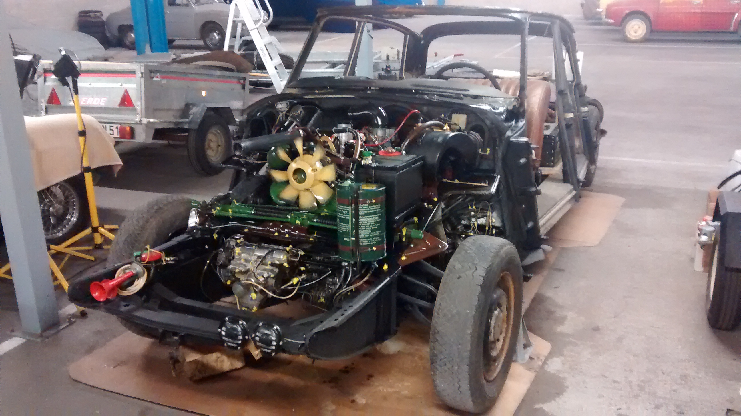 Jusque là, j’ai fais tout moi-même (avec toutefois l’aide d’un ami pour les décapages), sauf la peinture finale (trop compliquée pour avoir un rendu parfait et pas de cabine !). Je suis équipé d’une fosse et d’un treuil roulant. Ce n’est pas mon métier car je suis informaticien mais ma passion depuis toujours…
