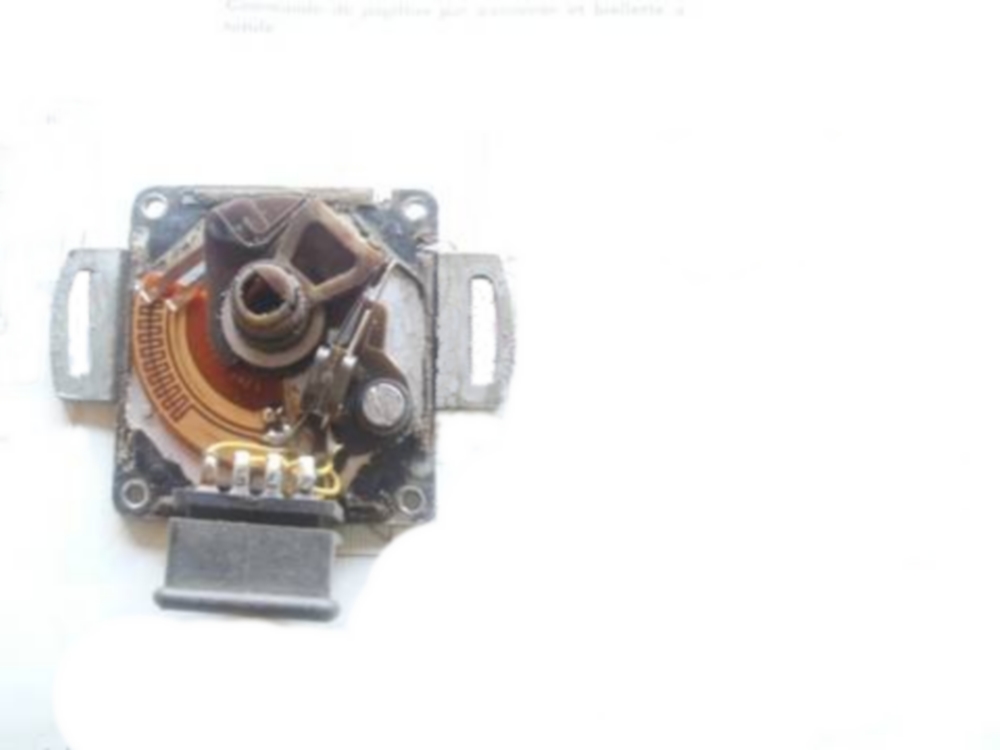 - Un contact solidaire de l’axe qui se ferme dès que l’on accélère et qui s’ouvre dès que l’on commence à relâcher l’accélérateur