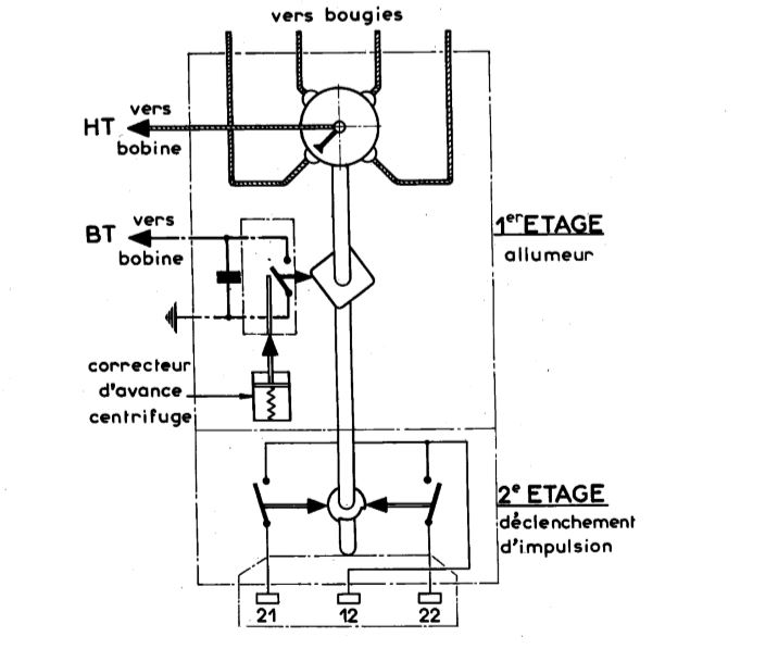 Spécifique aux ds à injection, il comprends dans sa partie basse un tiroir support des contacts déclencheurs d’impulsions, servant à alimenter en carburant les paires d’injecteurs des cylindres 1/3, puis 4/2