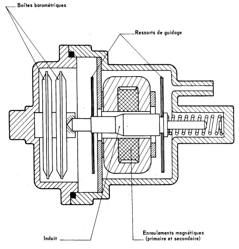 La sonde est constituée de deux capsules barométriques réagissant par contraction ou expansion aux pressions. Deux bobinages à travers lesquels se déplace un noyau de ferrite, transforment alors les variations de pression en signaux électriques envoyés au calculateur.