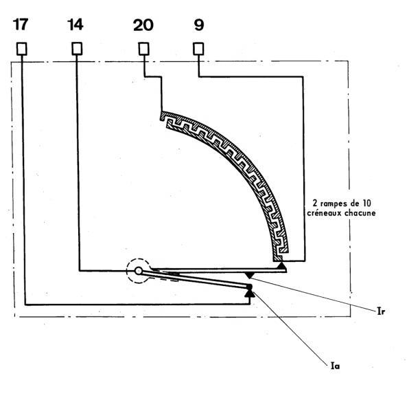 - une aiguille conductrice munie d’un contact, reliée à la borne 14 via le contact Ir (voir le schéma)