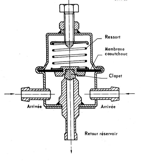 Il maintient une pression de carburant constante de 2,0 bars. Son fonctionnement est mécanique (ressort et clapet de décharge taré à 2 bars). Il est équipé d’un système extérieur de réglage par vis permettant d’ajuster la pression en cas de nécessite