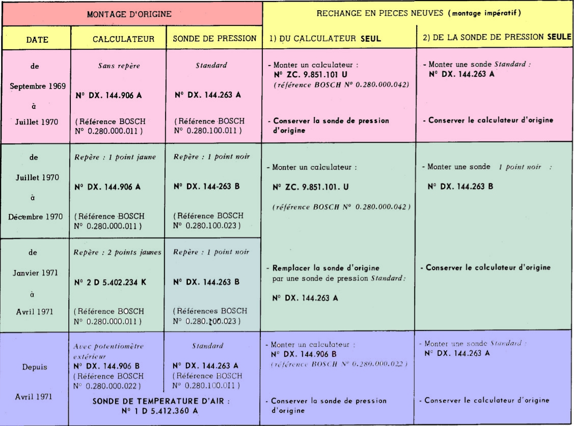 Tous ces injecteurs ont un débit de 380 cc par minute et une impédance de 3 Ohm ( résistance mesurée entre les deux bornes) . Toutes leurs caractéristiques sont rigoureusement identiques. Ne pas utiliser d’autres injecteurs, tels que ceux de CX (0280 150 151) qui n’ont en commun que leur aspect. A titre indicatif un injecteur de CX débite 304.8 cc /mn contre 379.9 pour celui de DS .