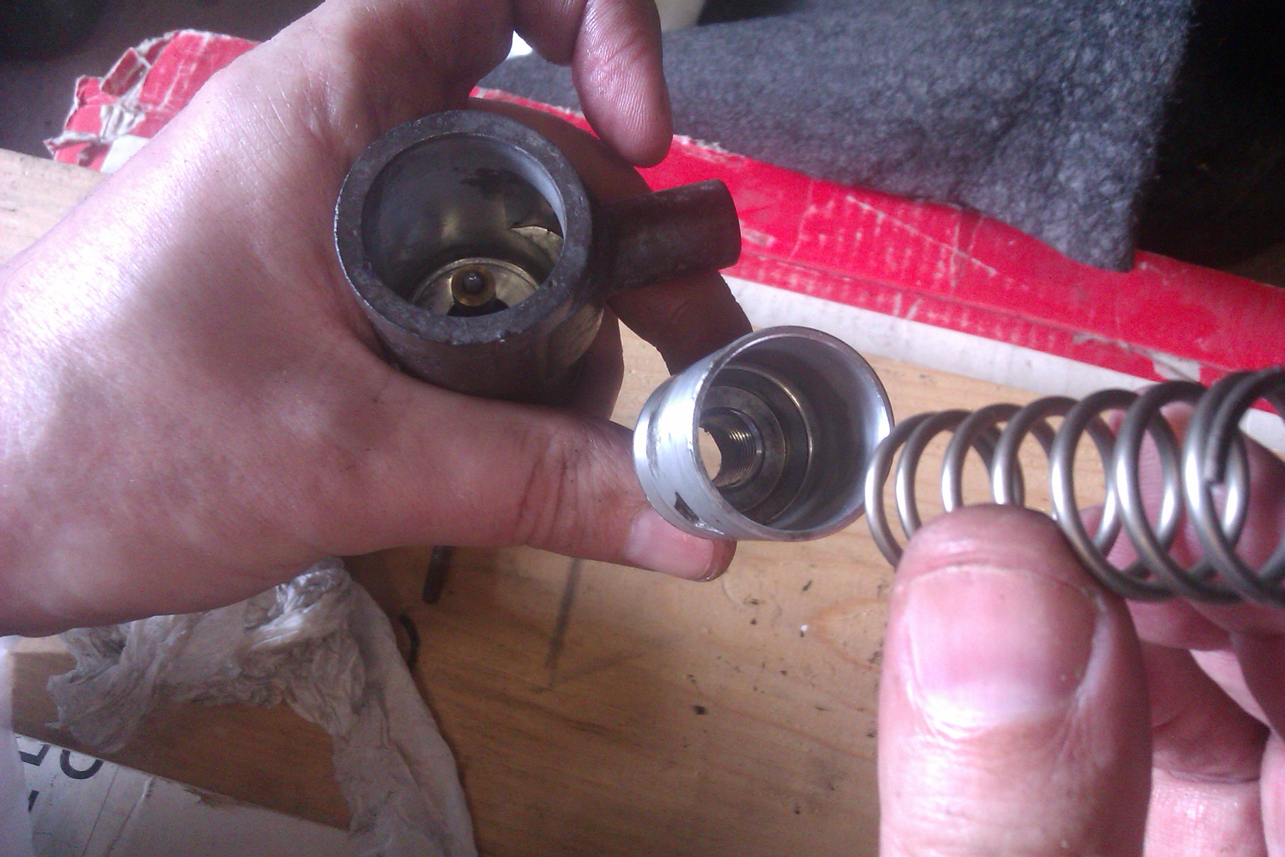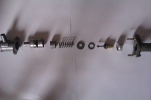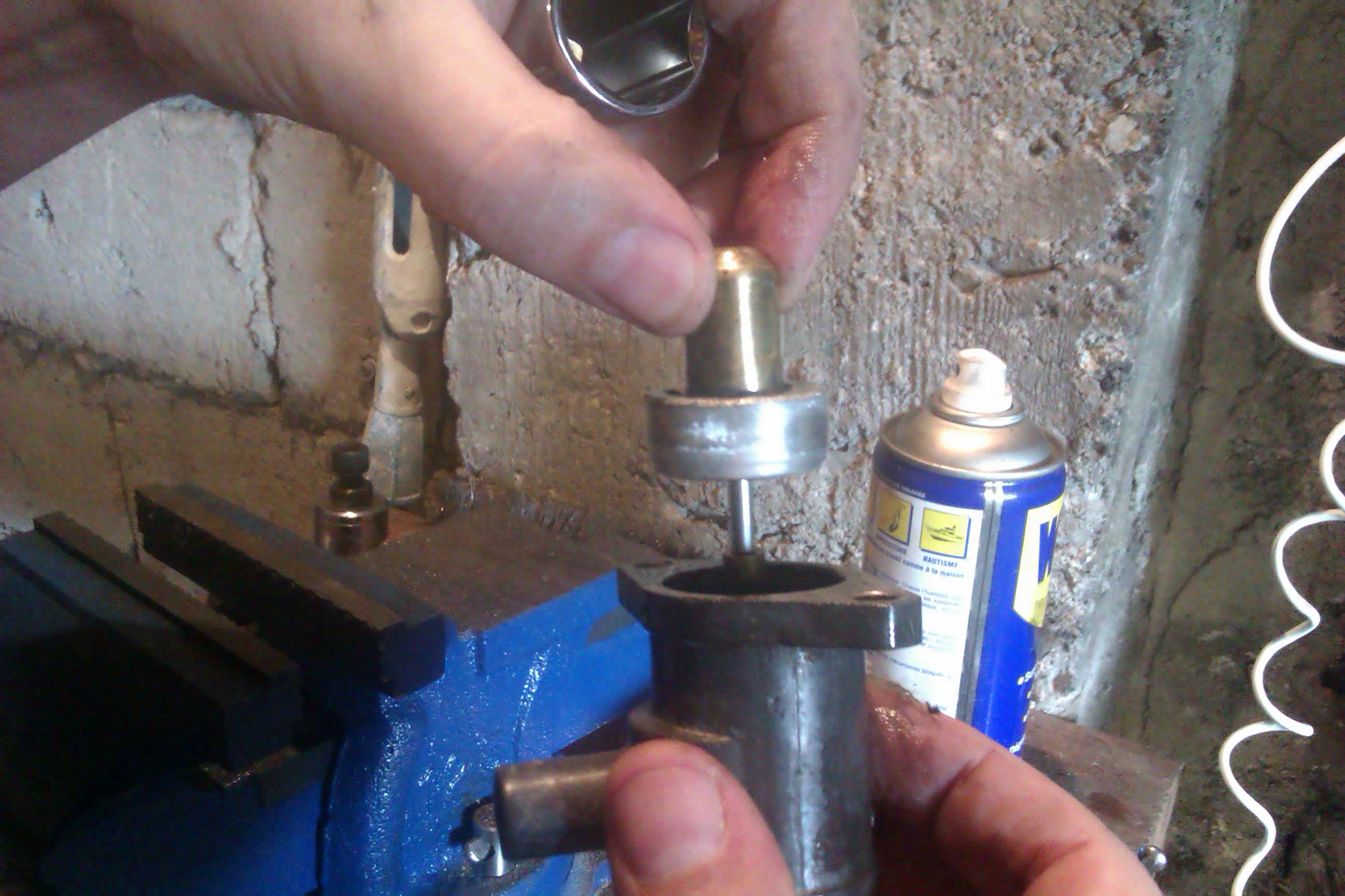 La chemise le piston et le ressort vont être à nettoyer soigneusement (éliminer les éventuelles aspérités avec de l’abrasif très fin (grain 600 environ puis 1000). Ne pas hésiter à effectuer un polissage ( pâte à polir ou polish auto, pierre d’argent etc) . Un essai sans le ressort de contre poussée doit permettre à la simple gravité de laisser le piston redescendre, et il doit coulisser sans le moindre point dur.