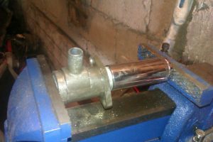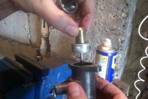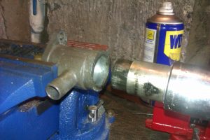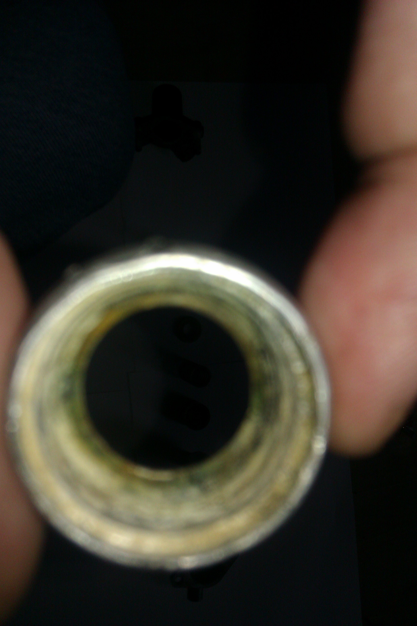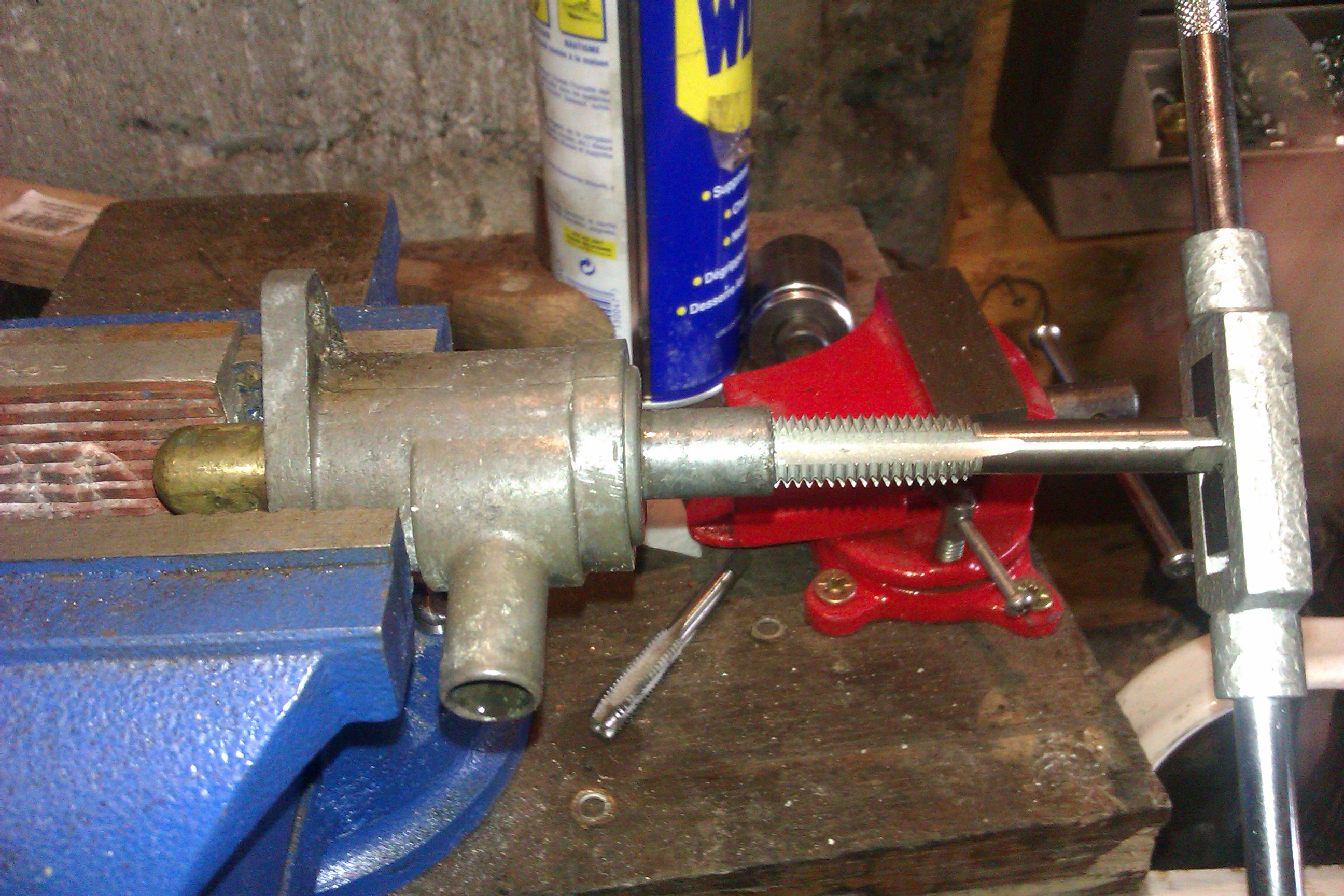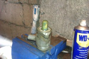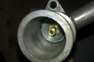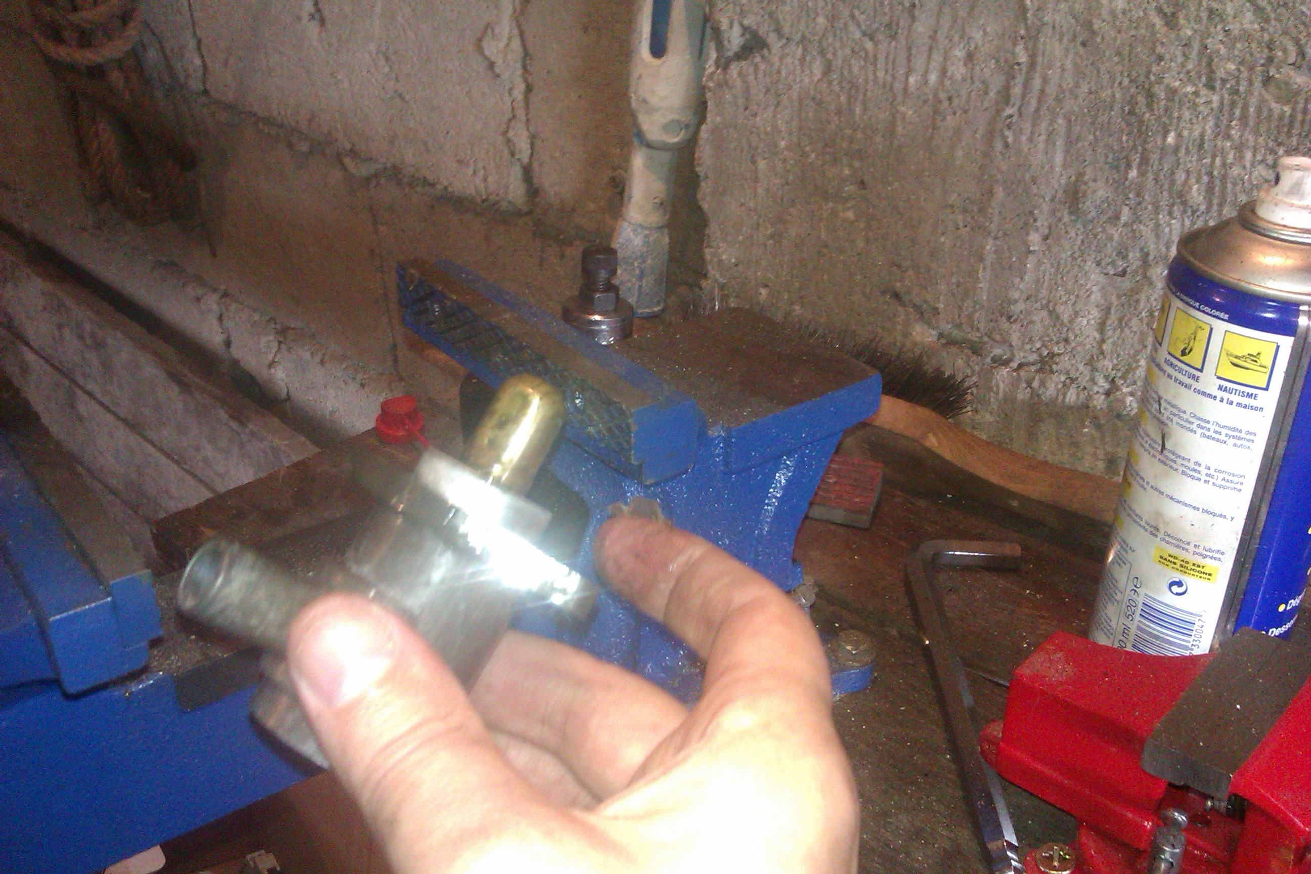 Il y a deux autres techniques possibles pouvant éviter de fileter le tube de sortie, mais l’une met en danger la cartouche de cire et l’autre demande pas mal d’habileté pour fabriquer l’outil d’extraction. Elle n’est à mettre en oeuvre qu’en cas de corrosion très importante de l’alu. (à la base du tube qui sera fileté).