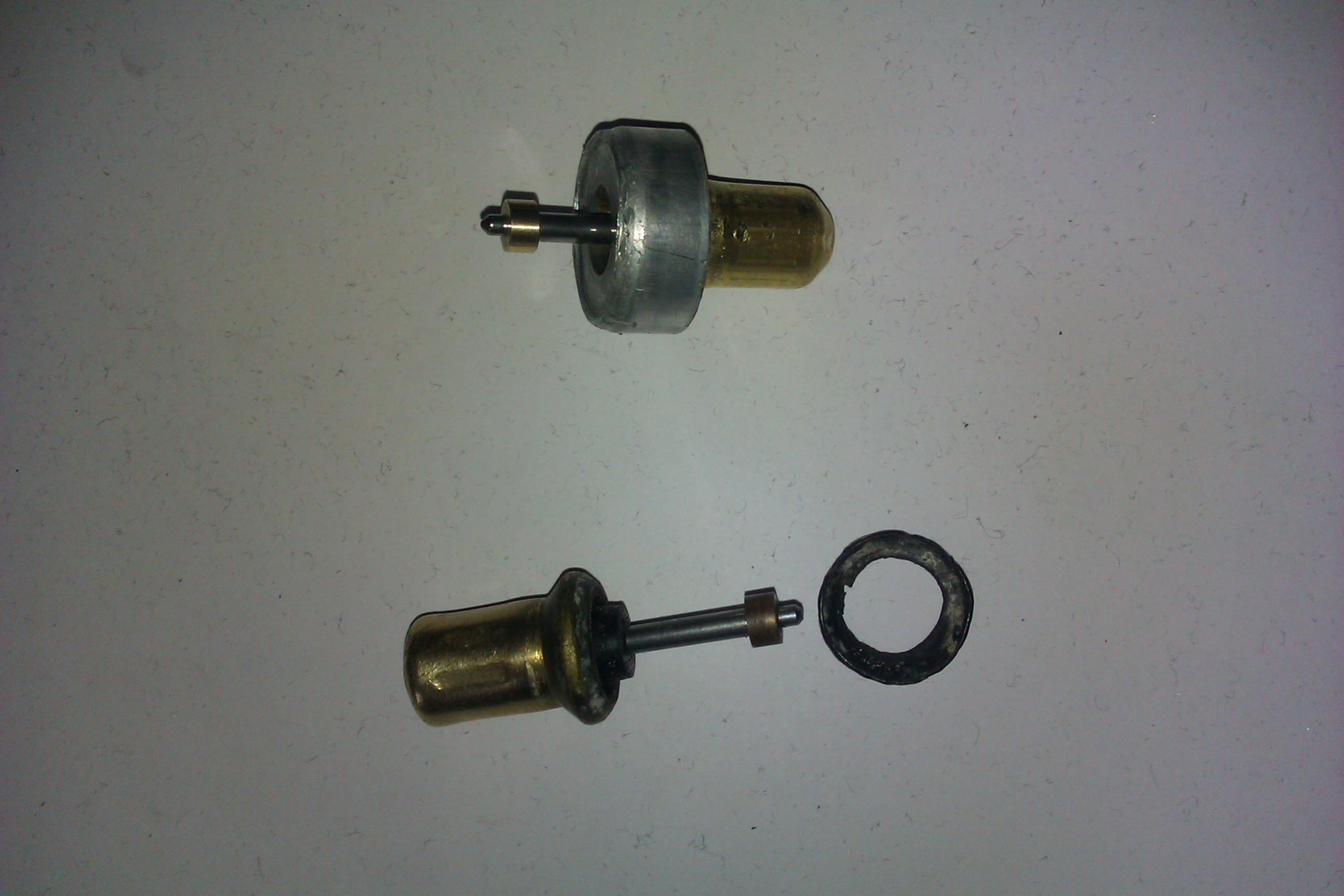 A noter que si le piston sort de la cartouche, c’est sans conséquence, il n’y a pas de joint d’étanchéité, il suffit alors de le remboiter.( la cire et le piston sont séparés par un tube/membrane étanche)