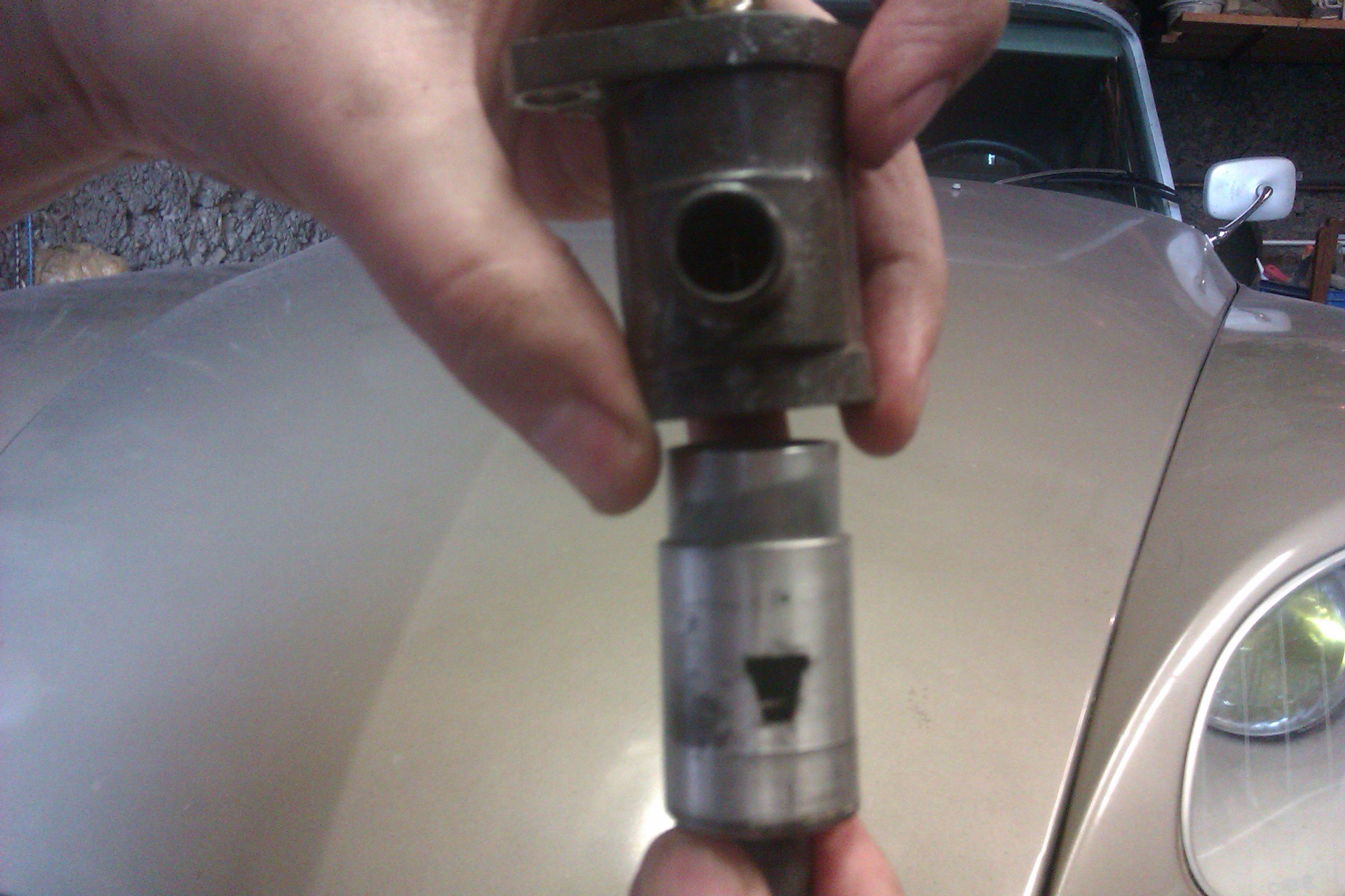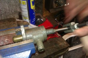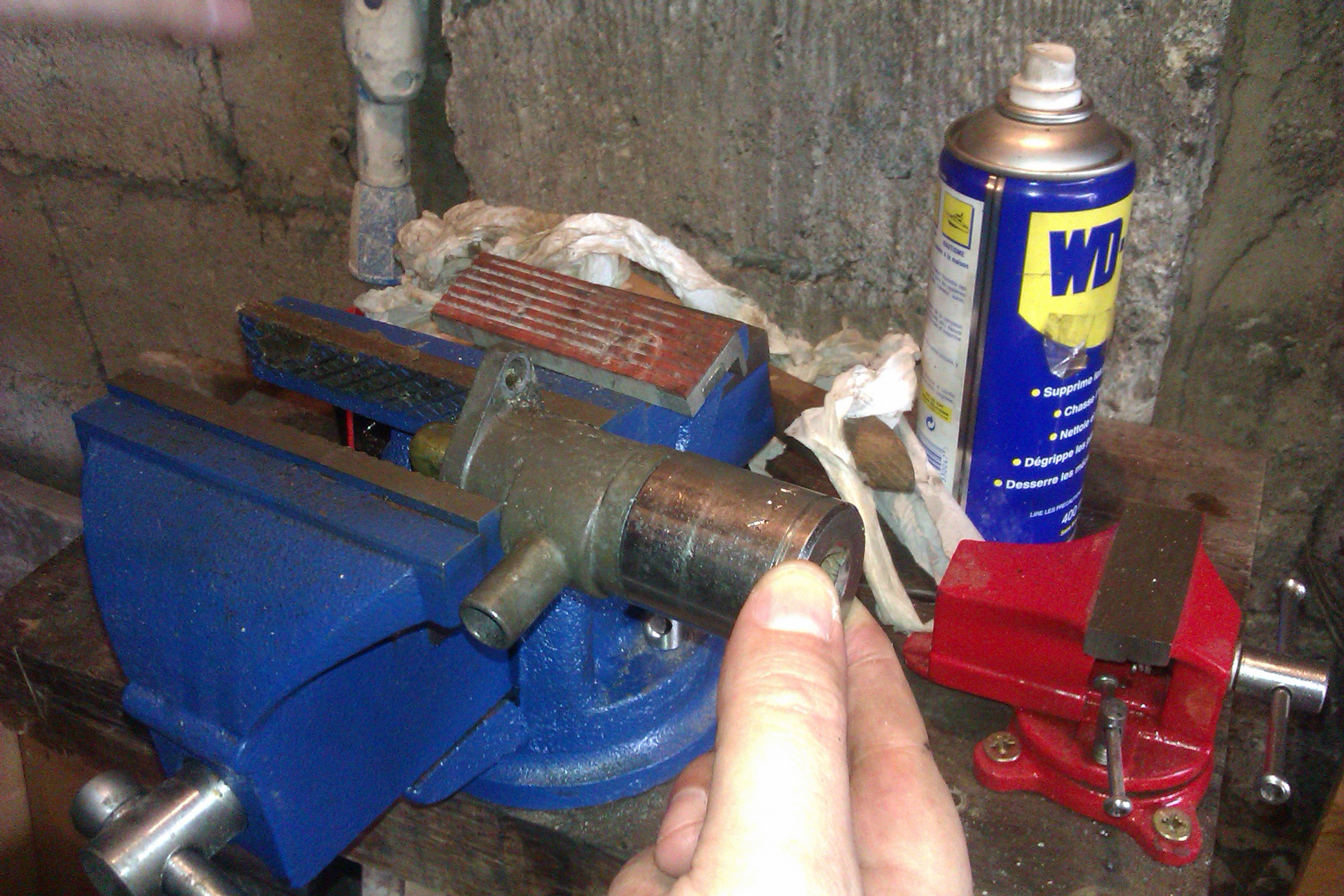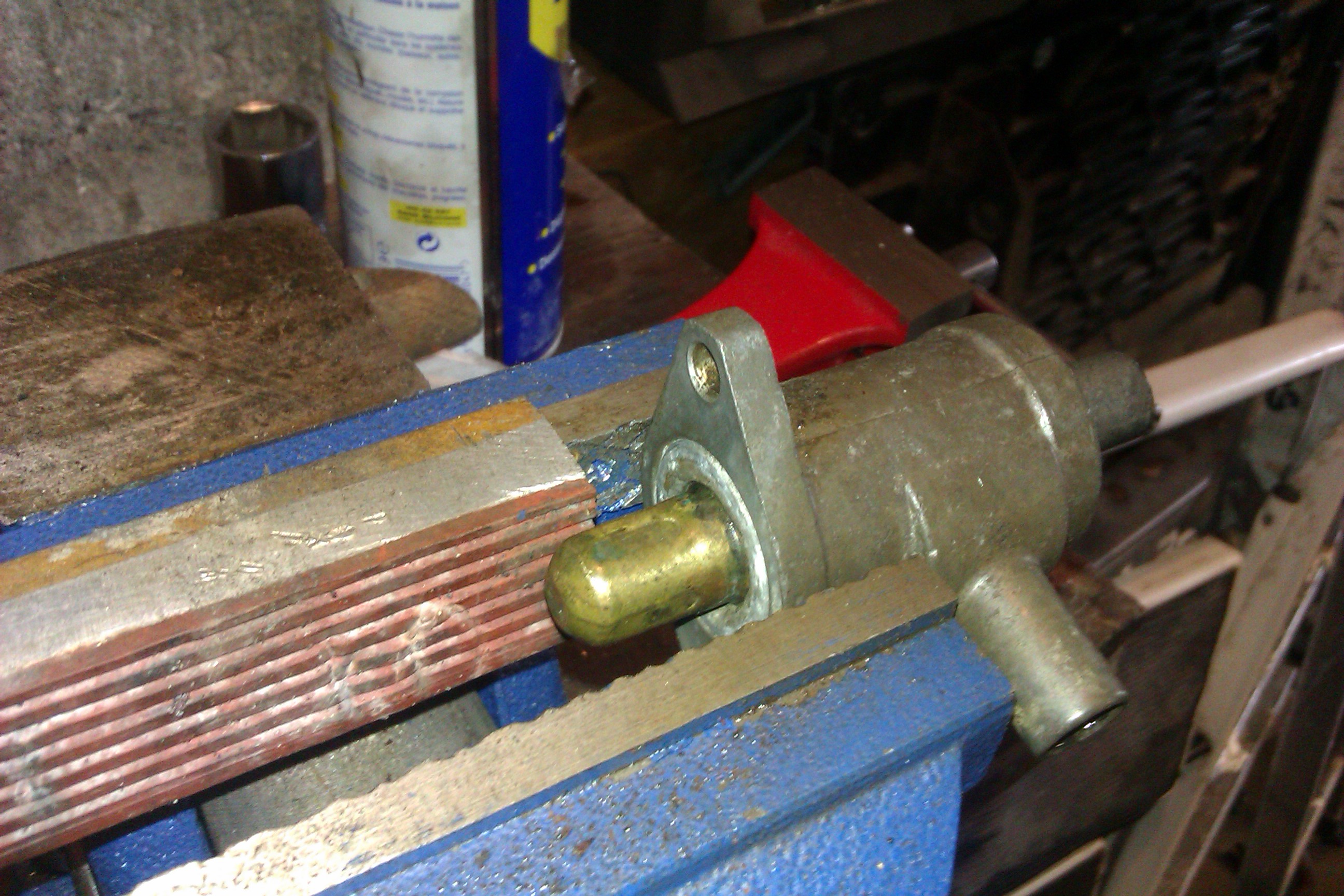Je déconseille fortement cette solution, (sauf corrosion du tube) . Il s’agit de la technique que je n’ai pas expliquée parce qu’il en résulte la destruction de la cartouche de cire, et parfois même l’endommagement du piston. La contrainte est trop importante sur ces deux éléments. La cartouche de cire n’est que très rarement à remplacer. A titre d’exemple, une de mes 21 possède sa commande d’air additionnel d’origine , uniquement restaurée avec cette méthode, la cartouche de cire est d’origine, je n’ai changé que le joint d’étanchéité de la cage.