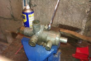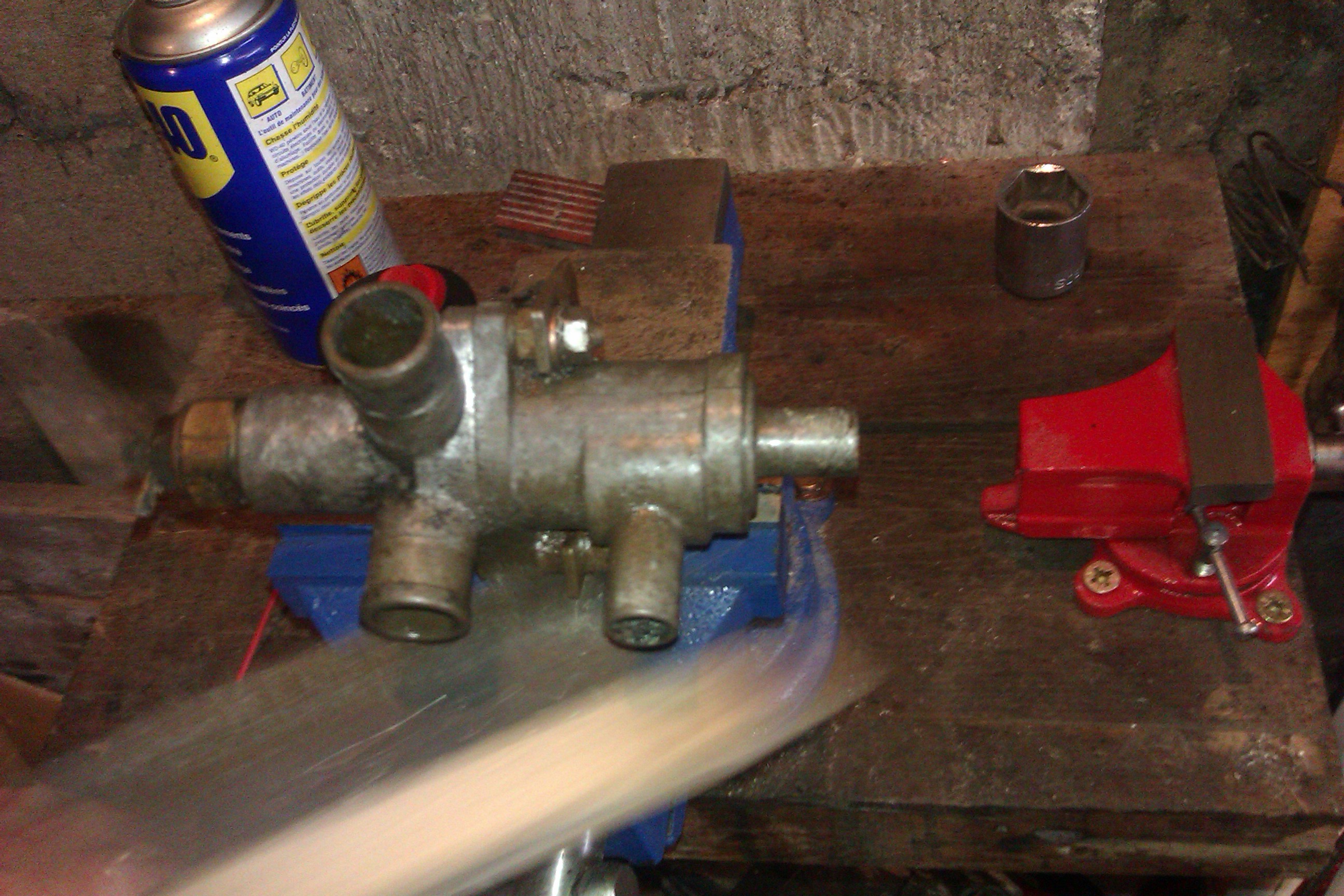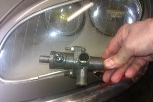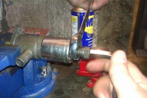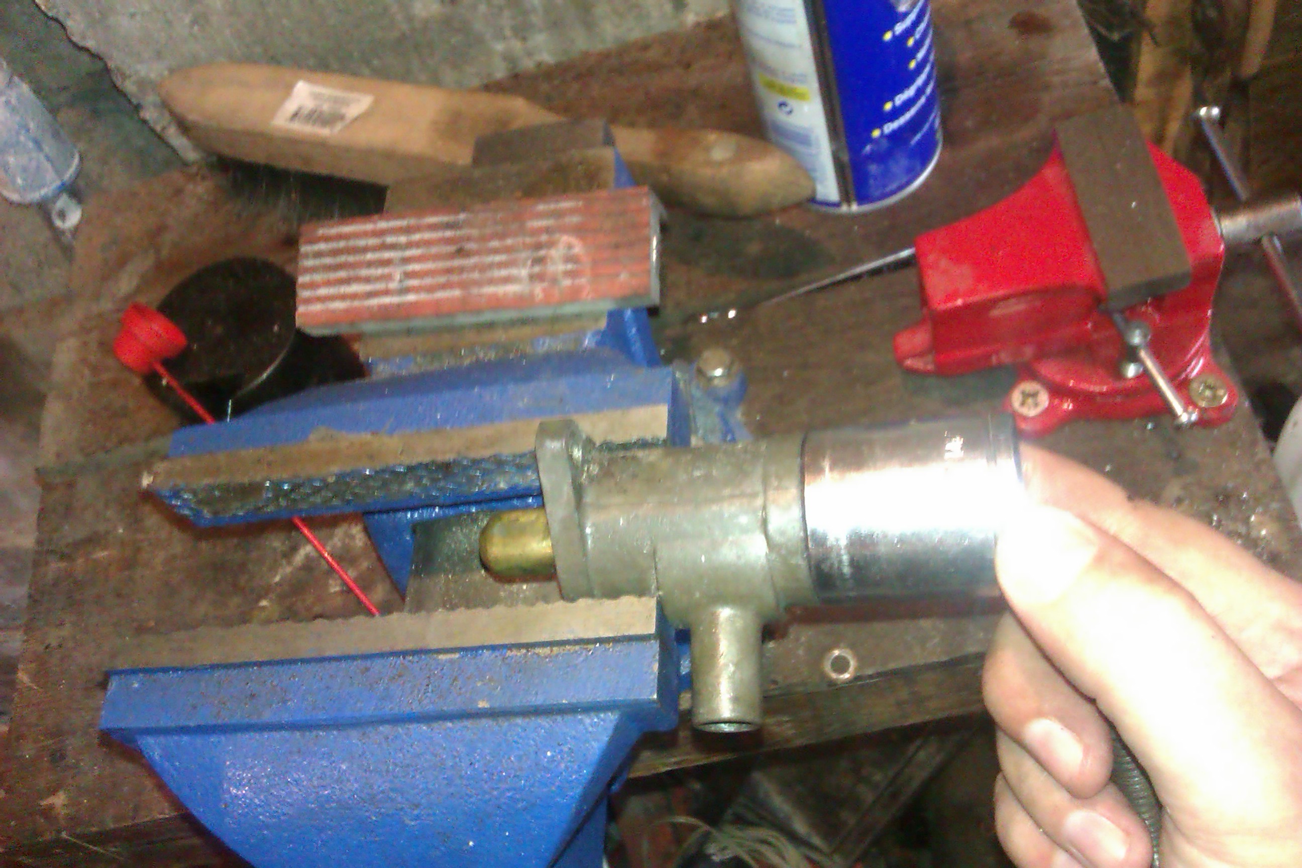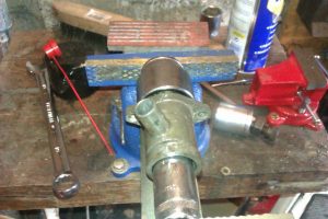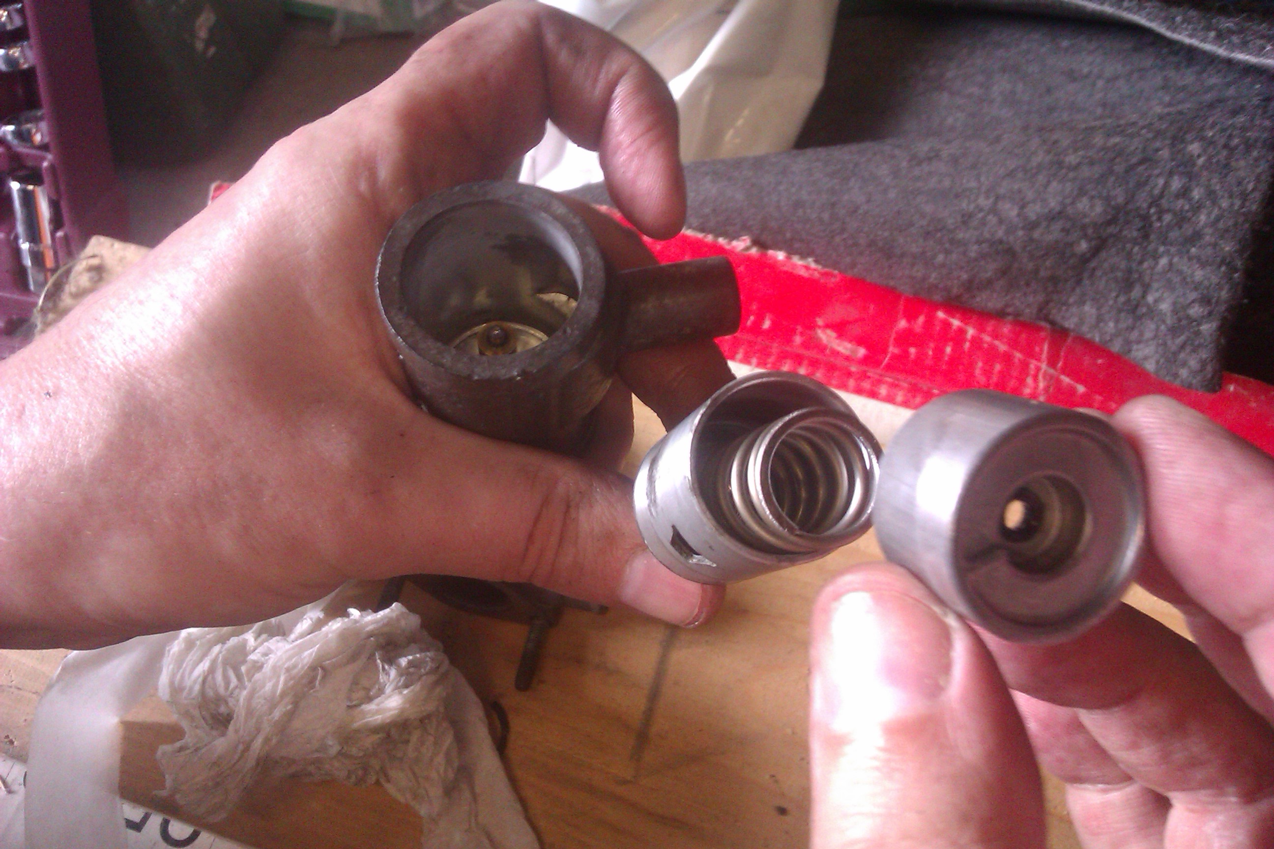 Je déconseille fortement cette solution, (sauf corrosion du tube) . Il s’agit de la technique que je n’ai pas expliquée parce qu’il en résulte la destruction de la cartouche de cire, et parfois même l’endommagement du piston. La contrainte est trop importante sur ces deux éléments. La cartouche de cire n’est que très rarement à remplacer. A titre d’exemple, une de mes 21 possède sa commande d’air additionnel d’origine , uniquement restaurée avec cette méthode, la cartouche de cire est d’origine, je n’ai changé que le joint d’étanchéité de la cage.