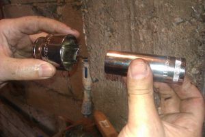 L’ensemble cylindre piston s’insert progressivement dans la douille, tourner calmement la clef plate pour éviter d’imposer une tension trop importante et trop rapide au tube .