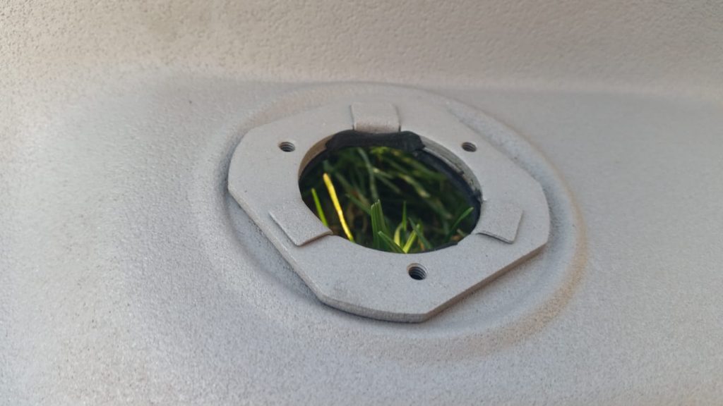 Un gros plan sur la niche de puisage/retour du circuit de carburant. En regardant de près le trou supérieur, on distingue le logement du tube plongeur